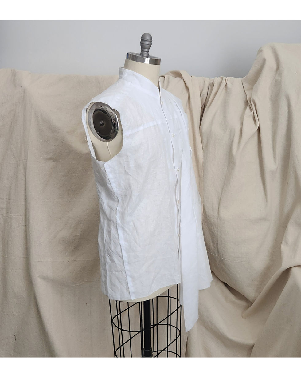 Raw Edge Linen Sleeveless Shirt w/pleated sash